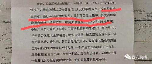 最近,西安某小区的物业费上涨引起了居民们的强烈不满。原来,这个小区的物业费已经多年未调整,而周边小区的物业费却纷纷上涨。这让不少居民觉得不公平,于是纷纷在网络上发声,要求物业给出合理的解释。